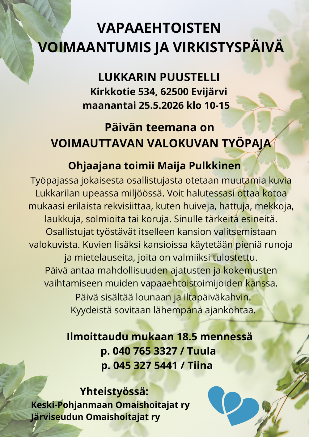 Koulutuksen järjestävät yhteistyössä Järviseudun ja Keski-Pohjanmaan Omaishoitajayhdistykset