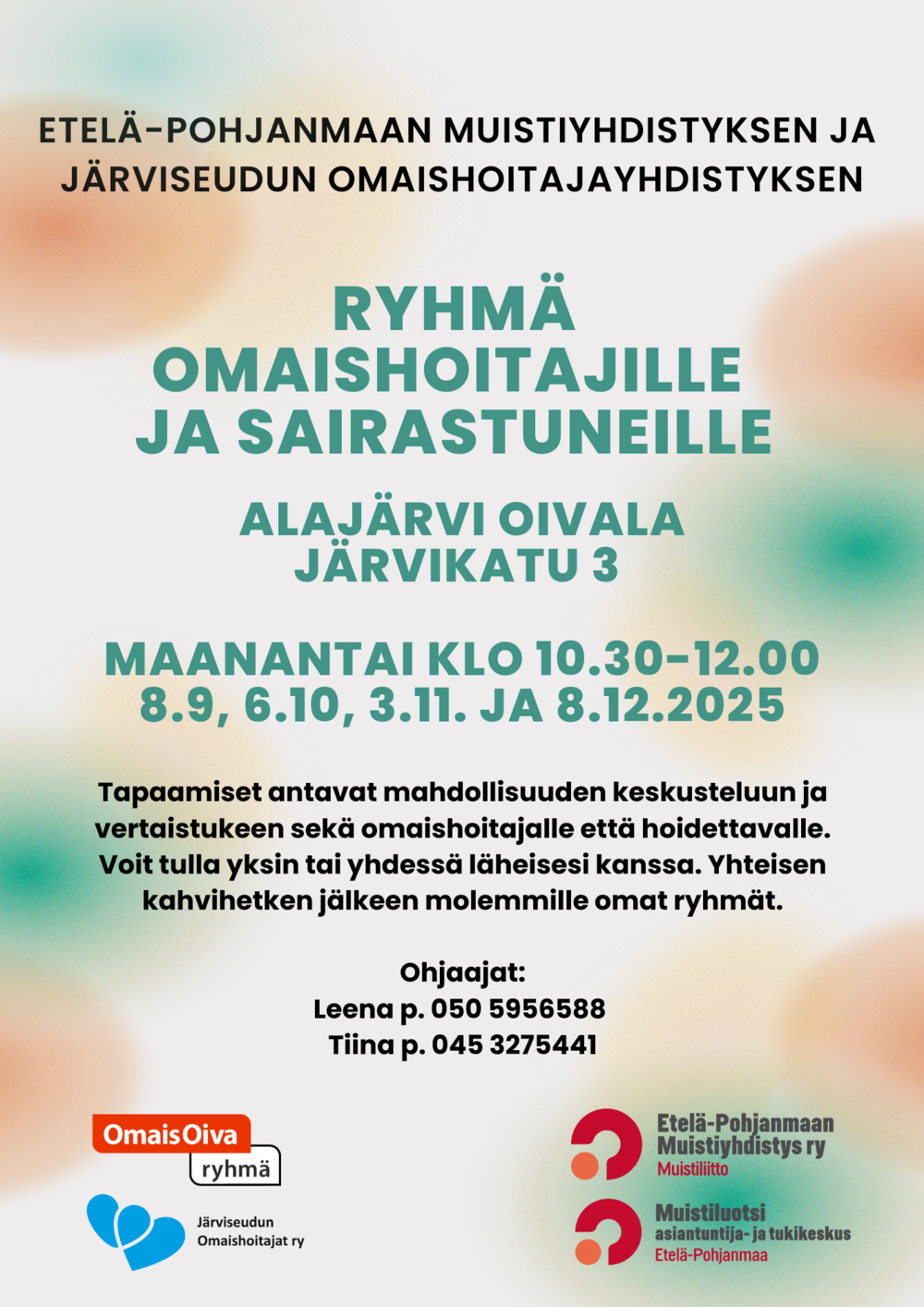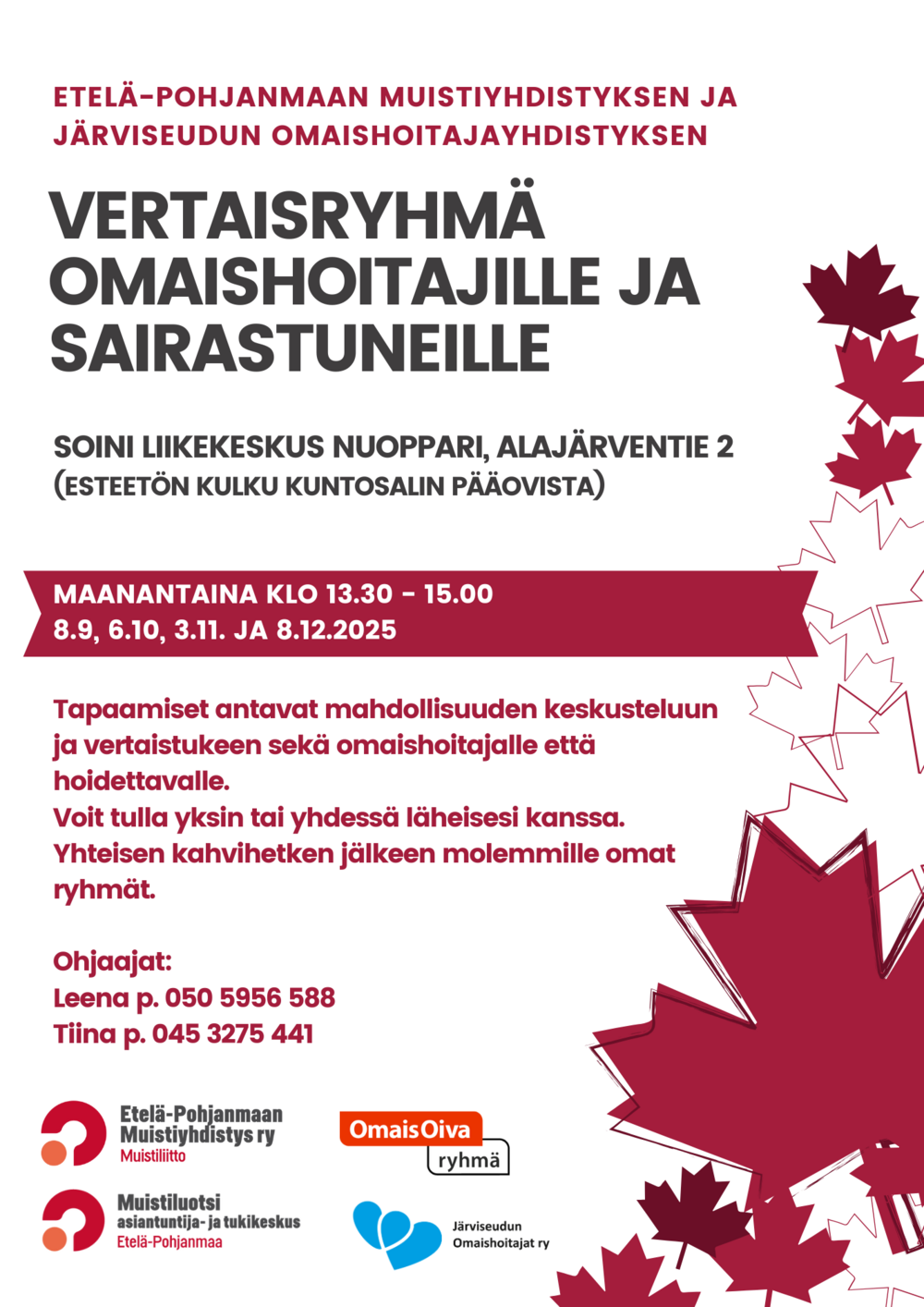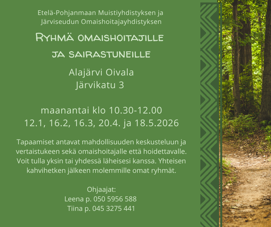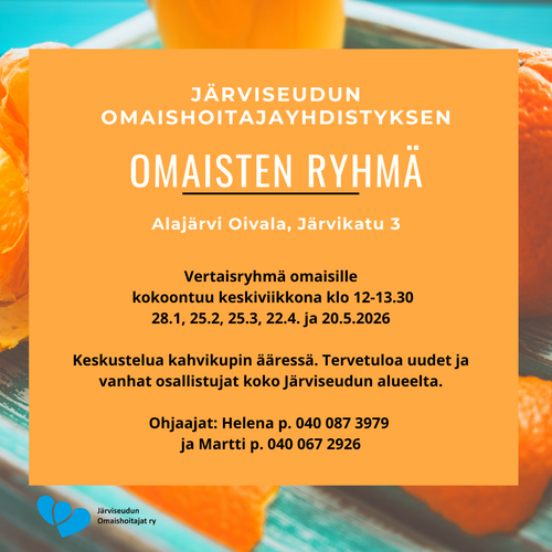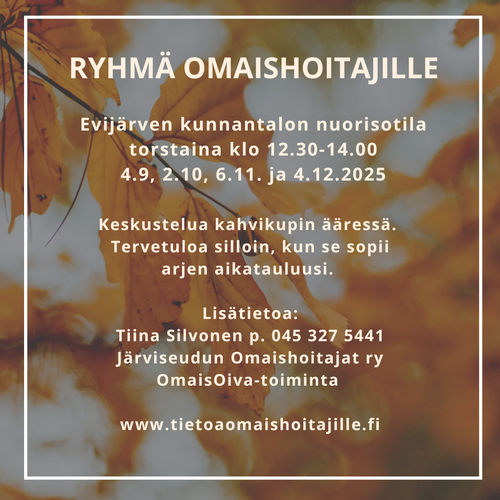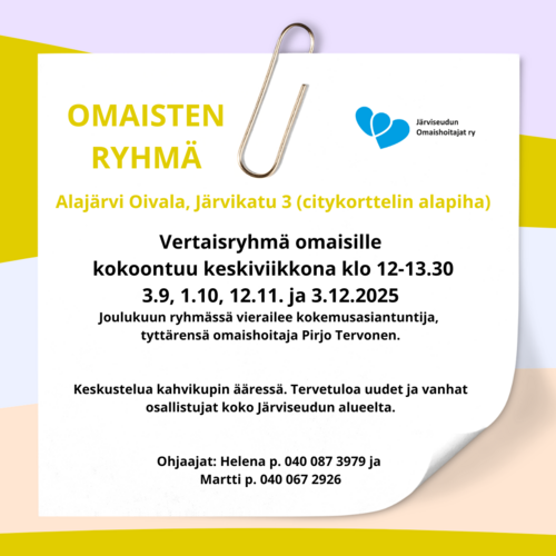 ke 3.12.2025 klo 12.00-13.30. Ryhmässä vierailee kokemusasiantuntija, tyttärensä omaishoitaja Pirjo Tervonen.